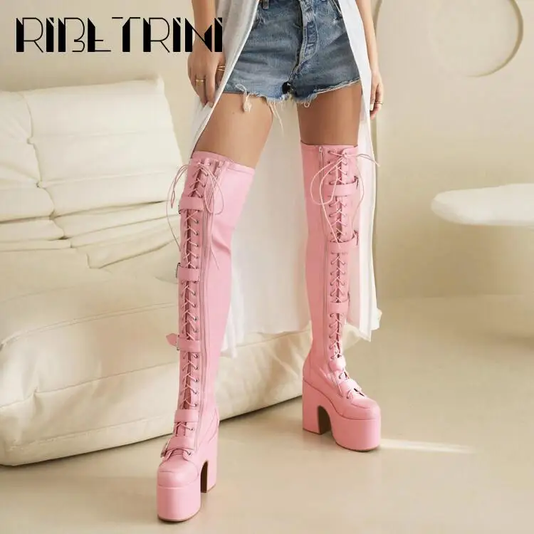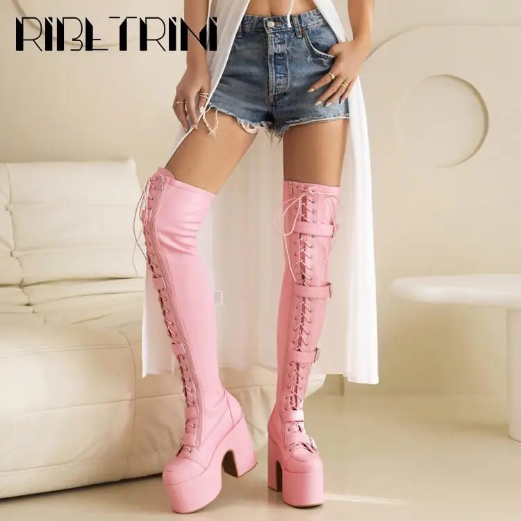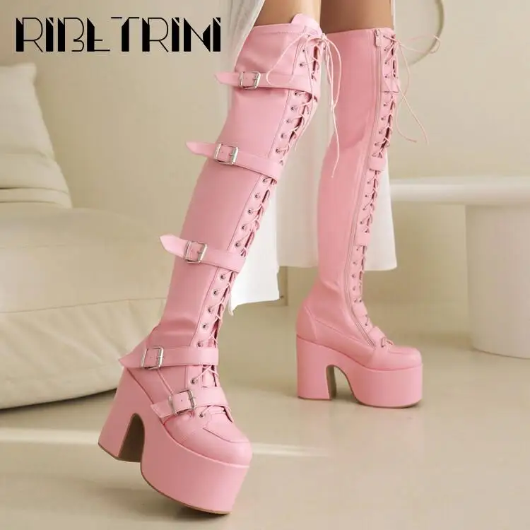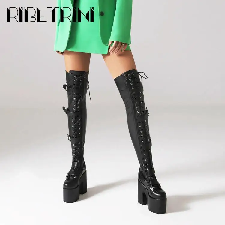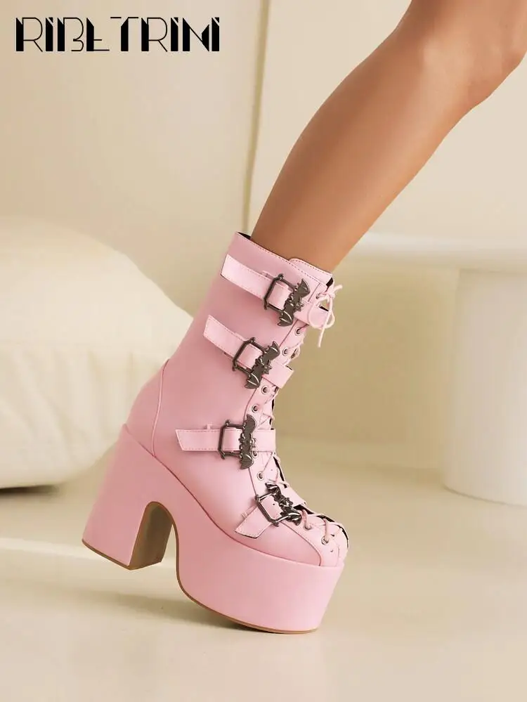 Goth Women Motorcycle Boots Block High Heels Platform Cool Street Boots