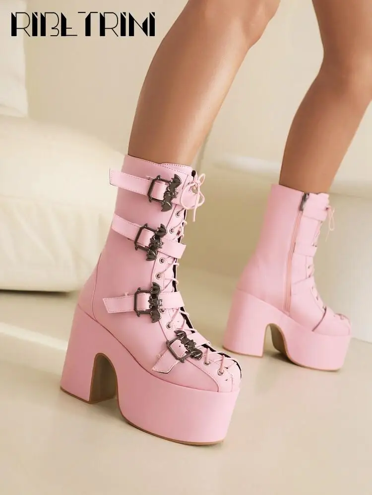 INS Punk Goth Women Motorcycle Boots Thick High Heels Platform Shoes Luxury Fashion Design Brand New Cool Women Street Boots
