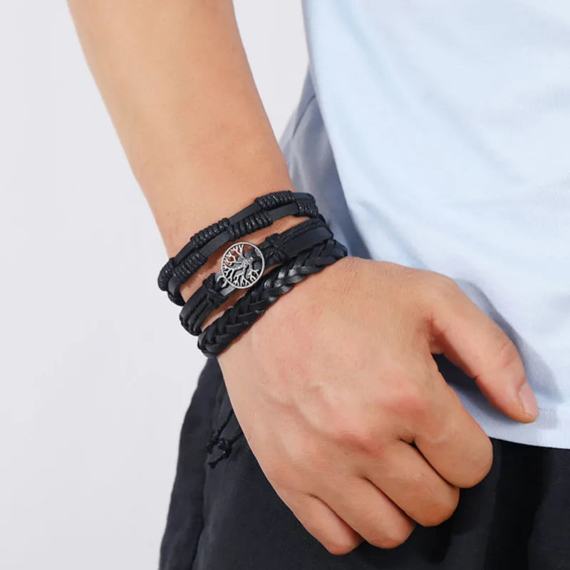Punk Multilayer Antique Leather Bracelet Set Skull Eye Star Charms Hiphop Rock Y2K Vintage Pu Gothic Wristband Man Goth Jewelry