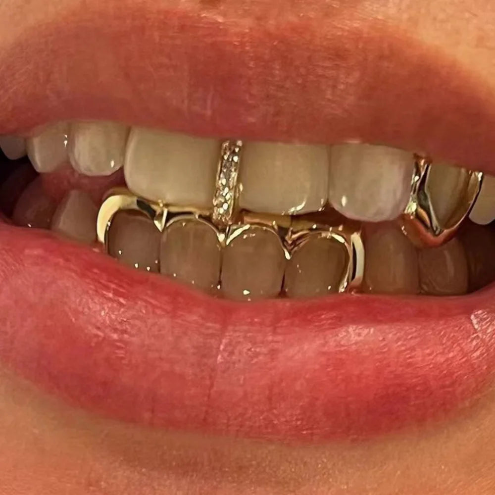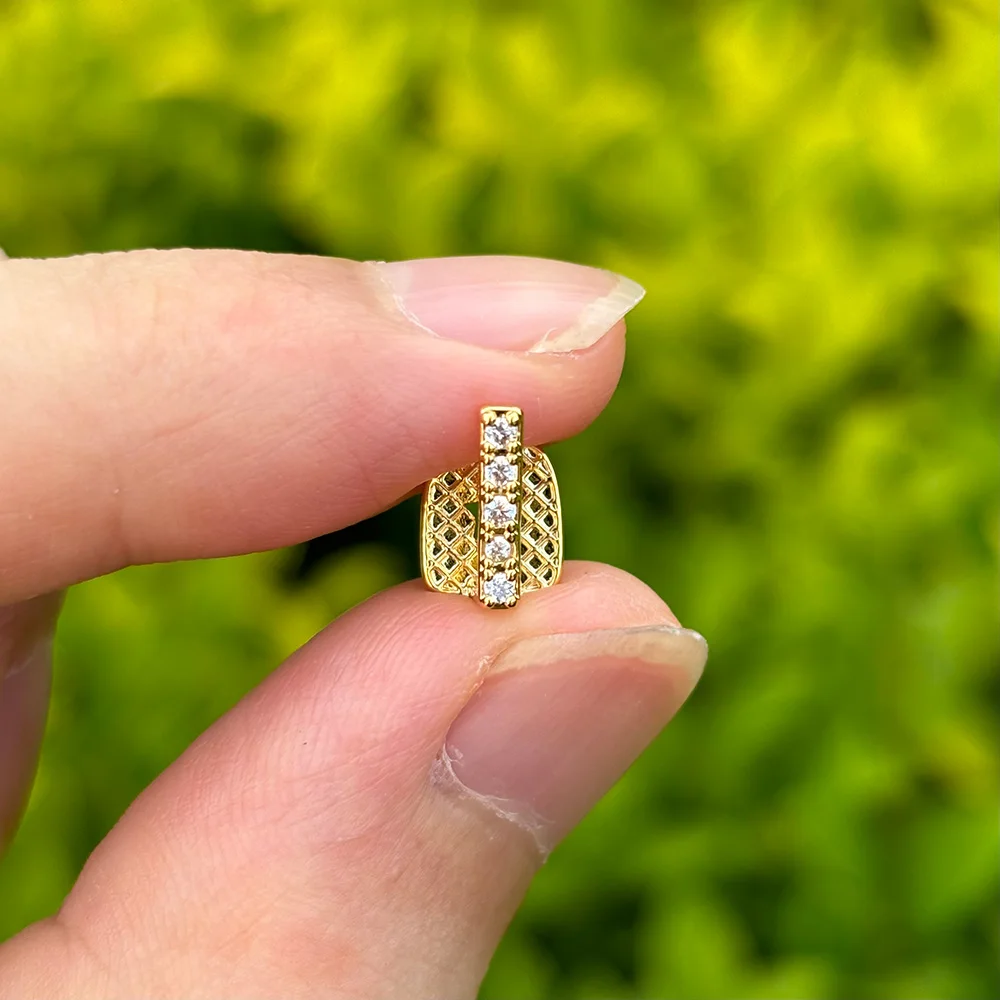 Single CZ Stone Vertical Bar Teeth Grillz 14K Gold Plated Cubic Zircon Tooth Caps