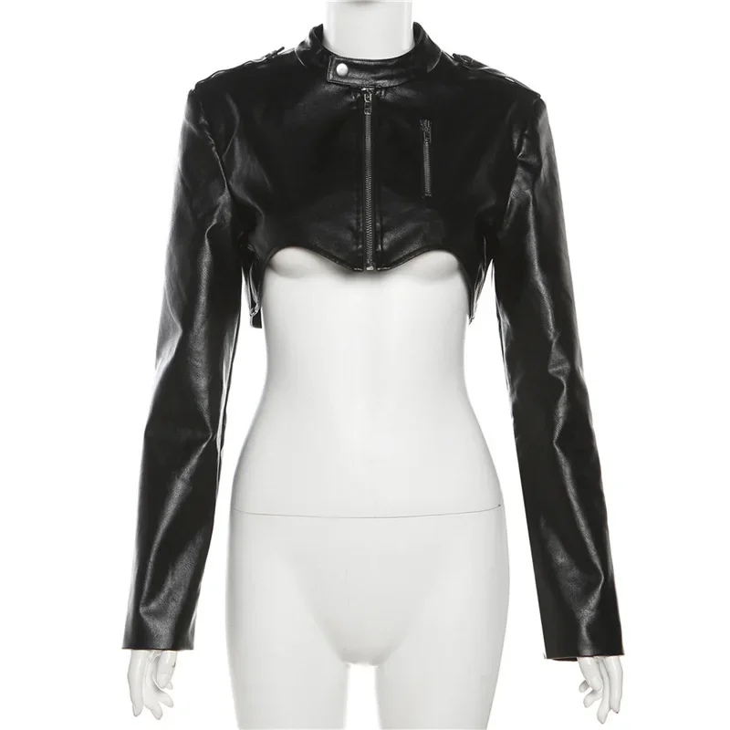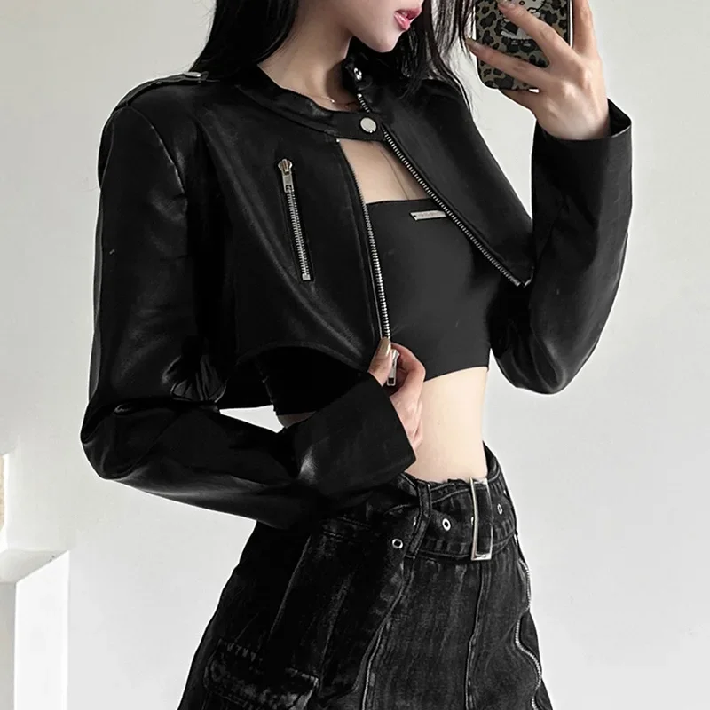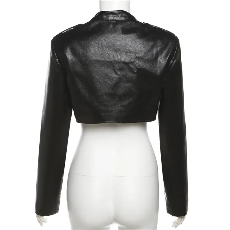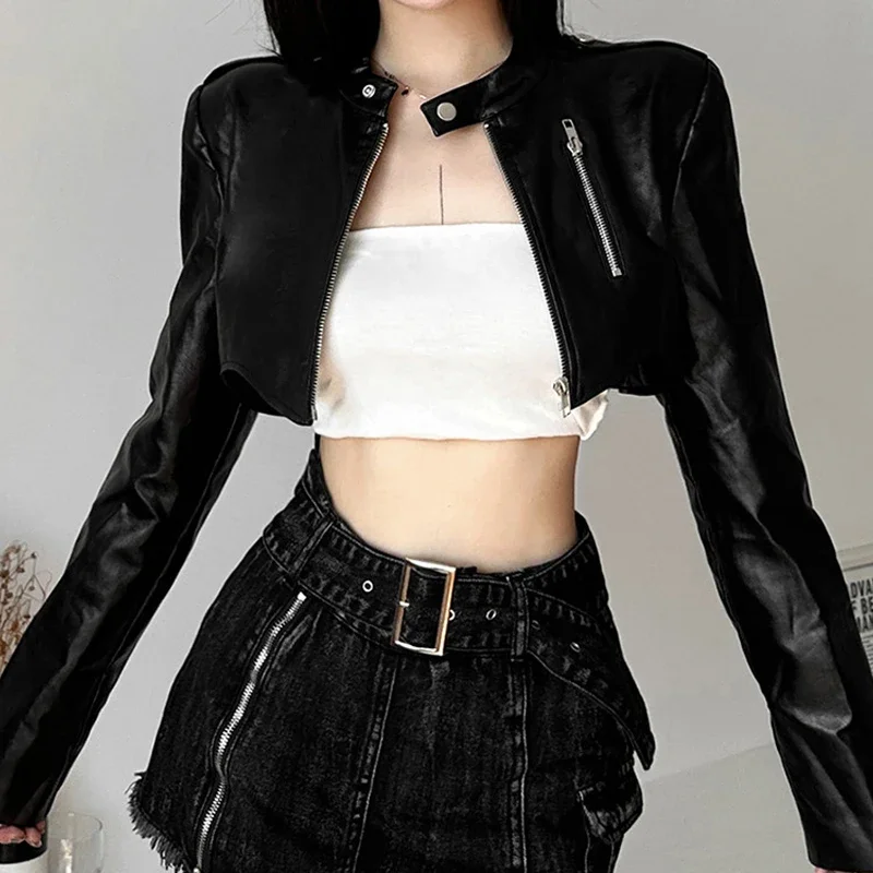 Modelnummer: Grunge Punk Faux Leather Crop Jackets