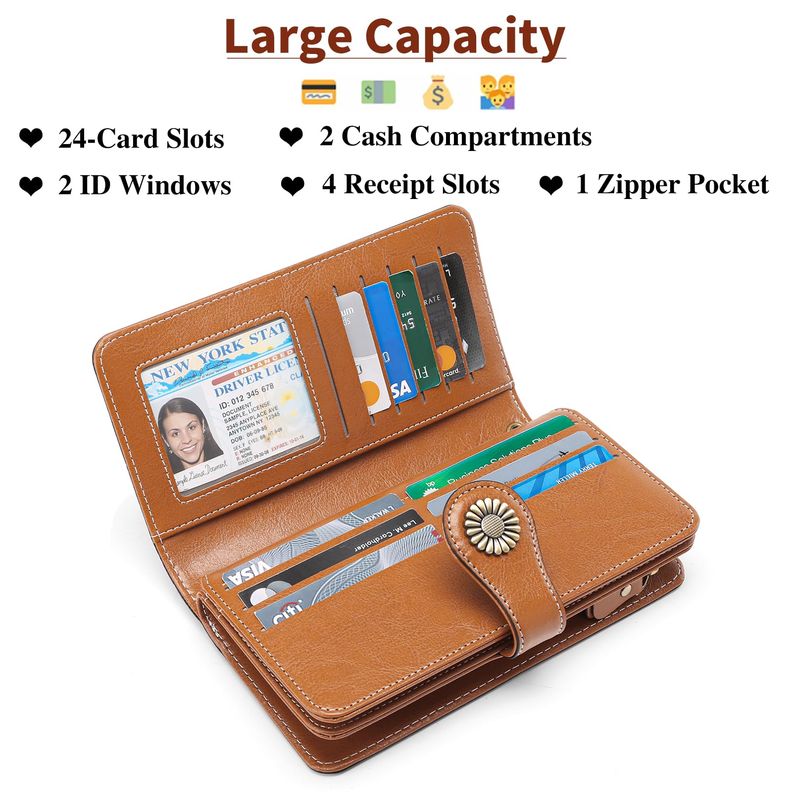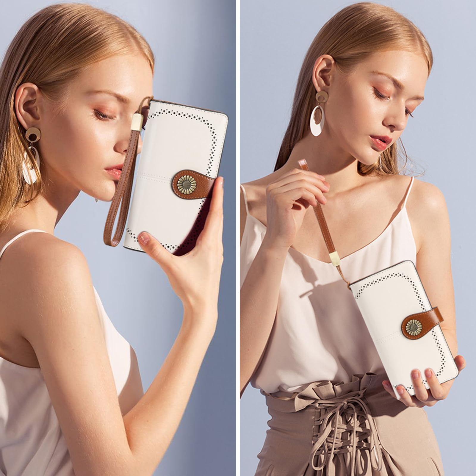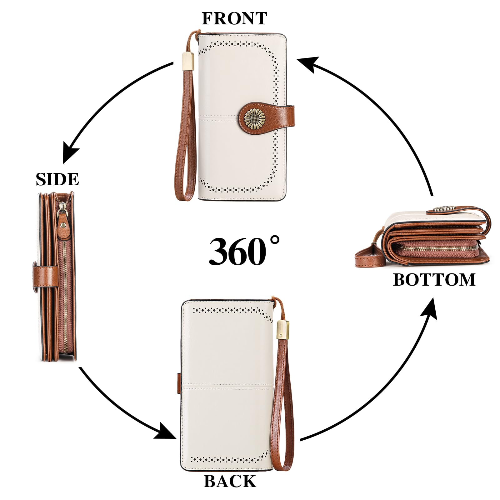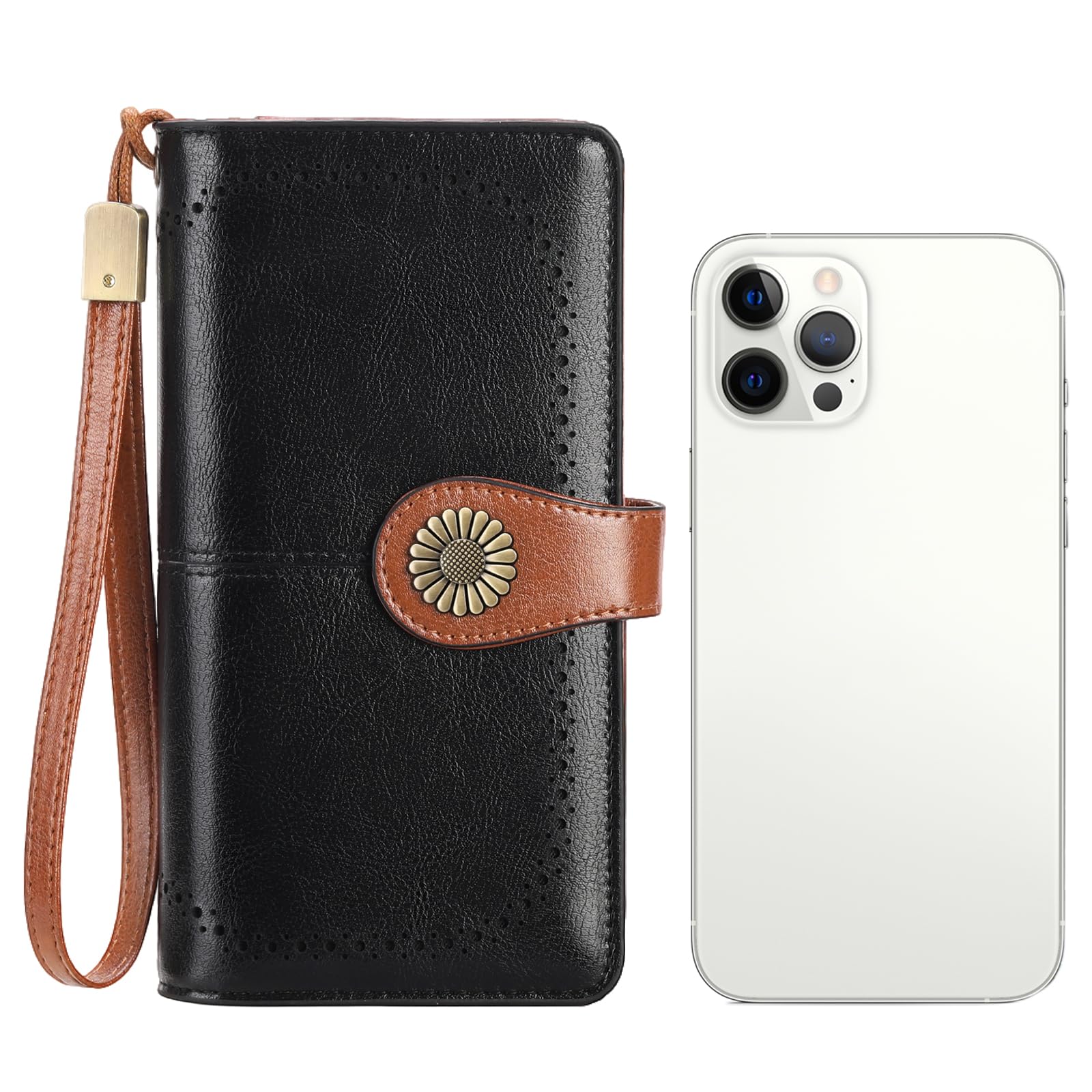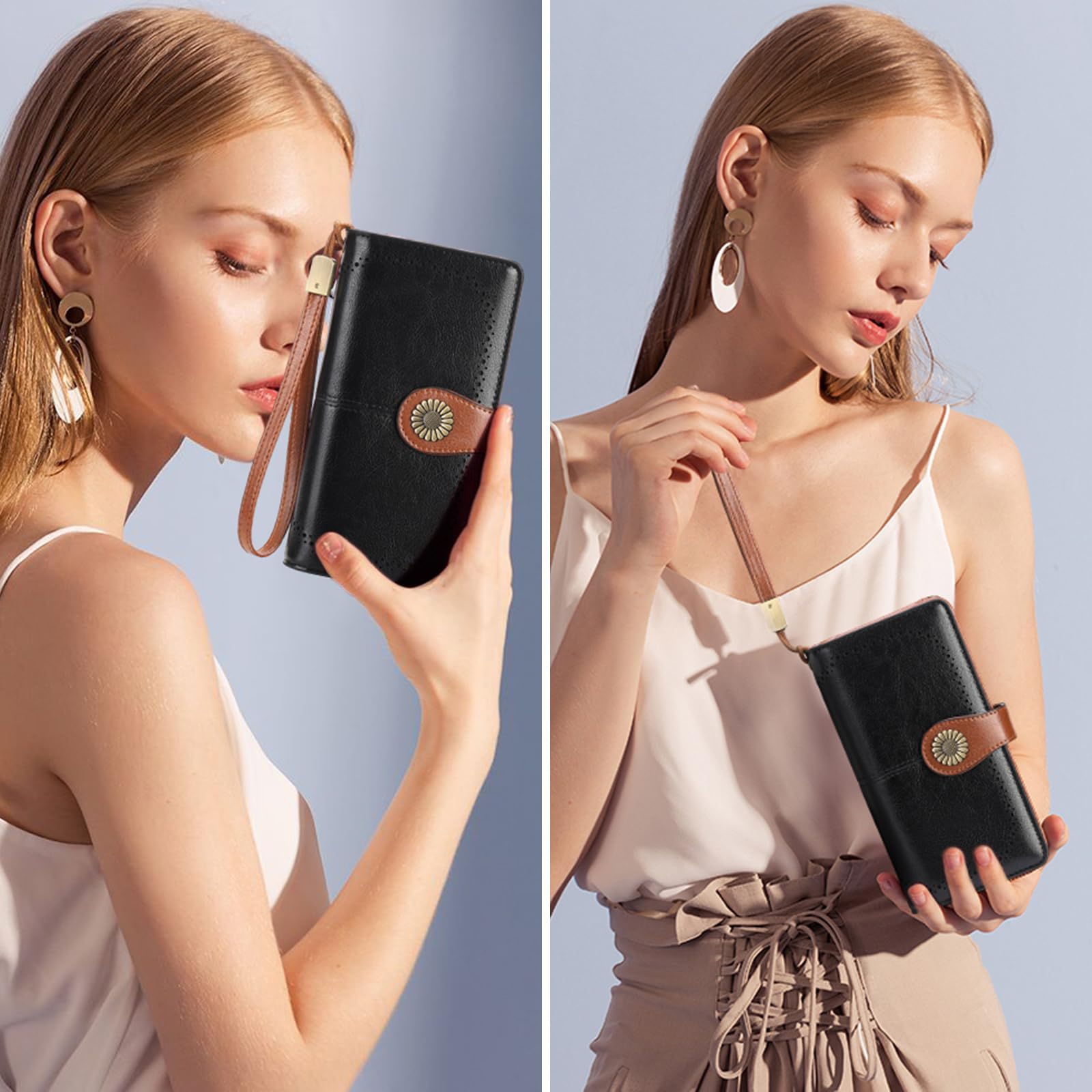 SENDEFN Wallets for Women Leather Credit Card Holder with RFID Blocking Large Capacity Wristlet