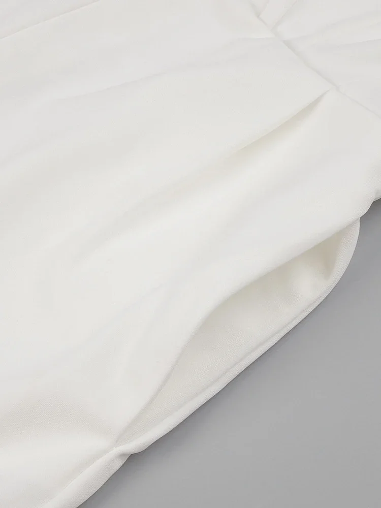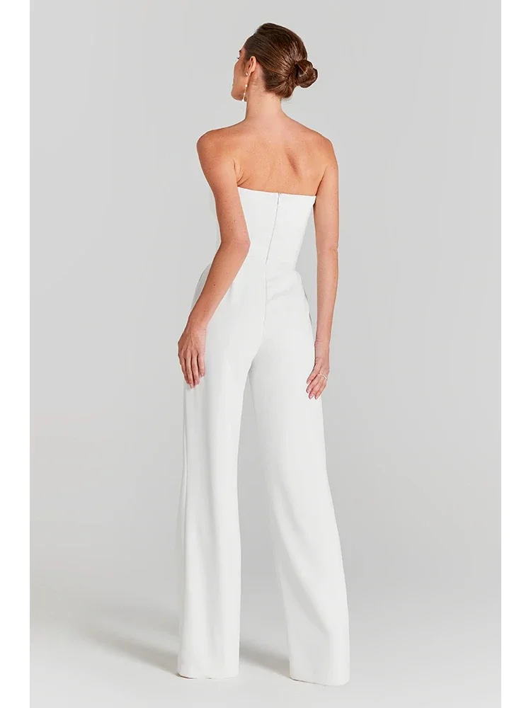 Mesh Pearl Beaded Bodysuits+Strapless Jumpsuit Two piece Sets Women White Jumpsuit Suits Evening
