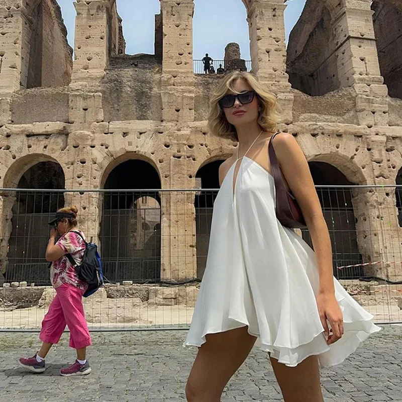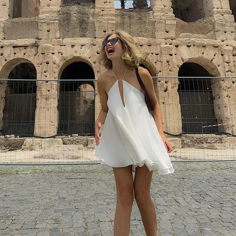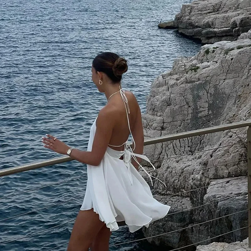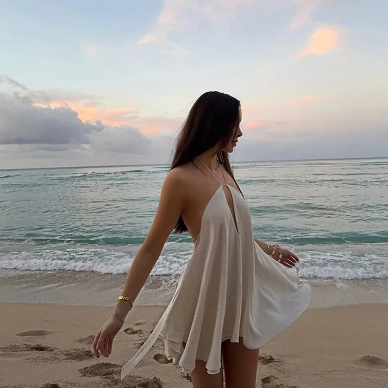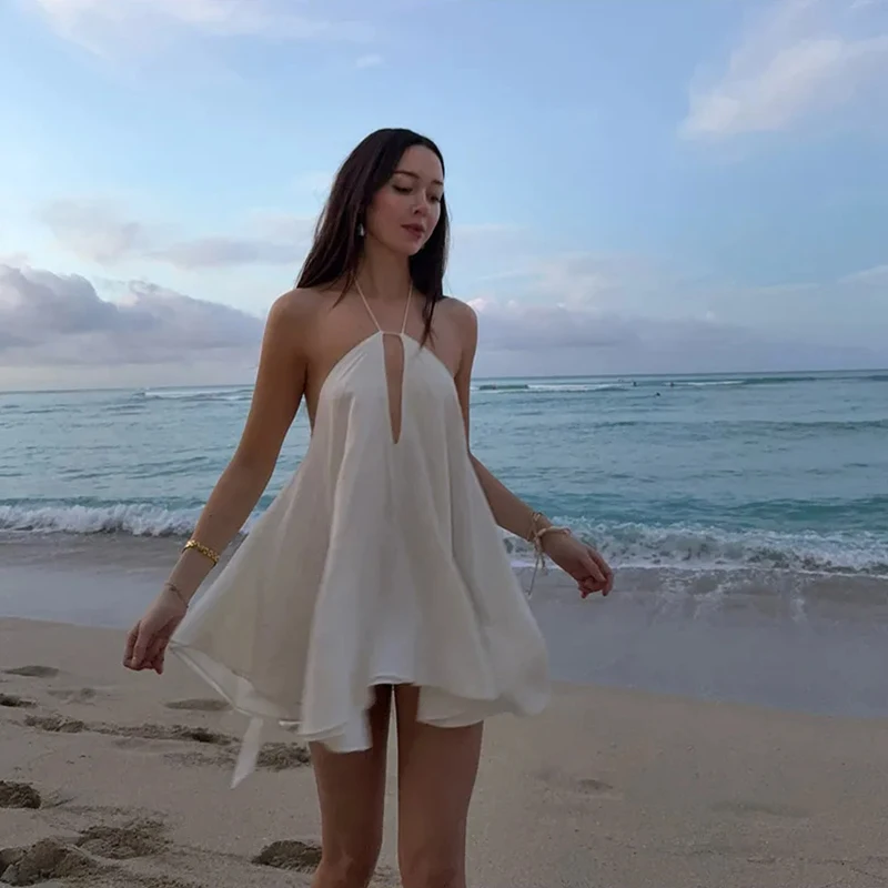 Off Shoulder Dress Elegant Sleeveless Hollow Out Backless