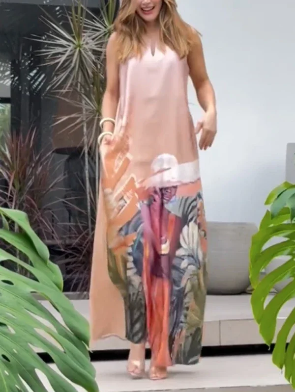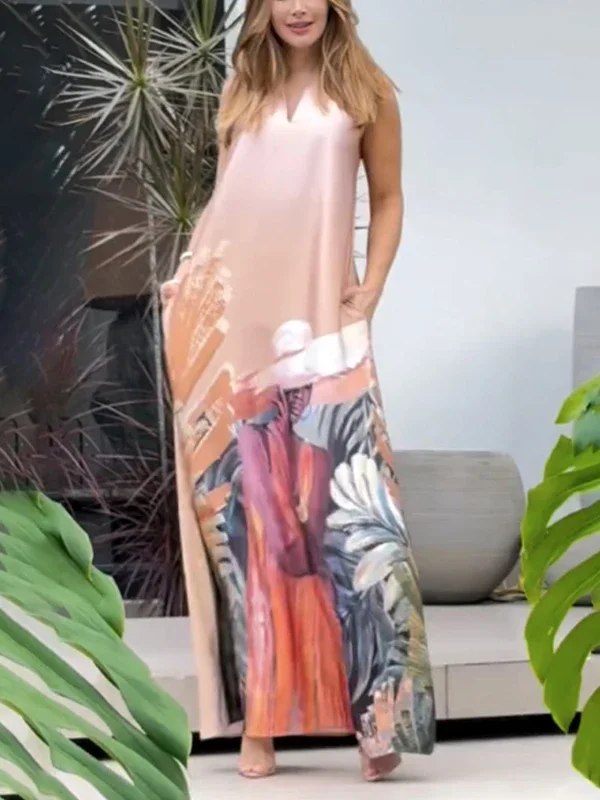 Bohemia Beach Maxi Dresses Women Sleeveless Loose Pockets