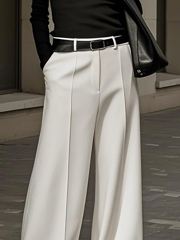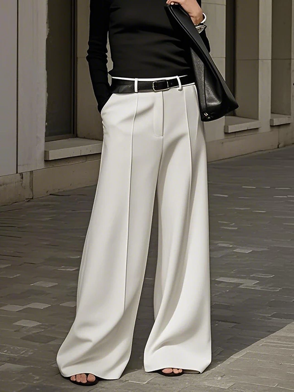 Black White Solid Color Wide Leg Pants Elastic High Waist Simple Trousers No Belt