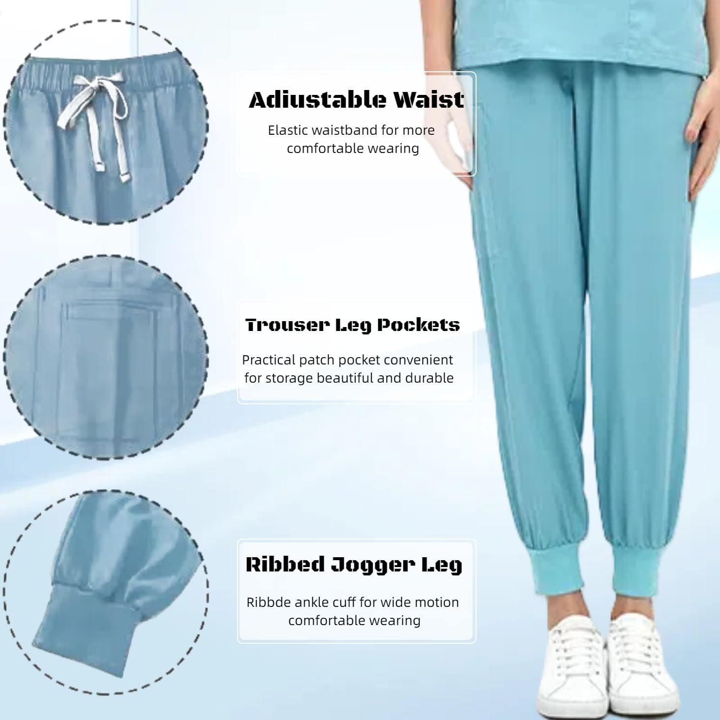 - 【Wide Application】: Professional V-neck design and adjustable drawstring waistband, suitable for people of different body shapes in hospitals,dental clinics, pediatric wards,etc.It is also ideal for casual wear, work wear, travel wear,fitness wear, yoga wear,running wear and other informal occasions.