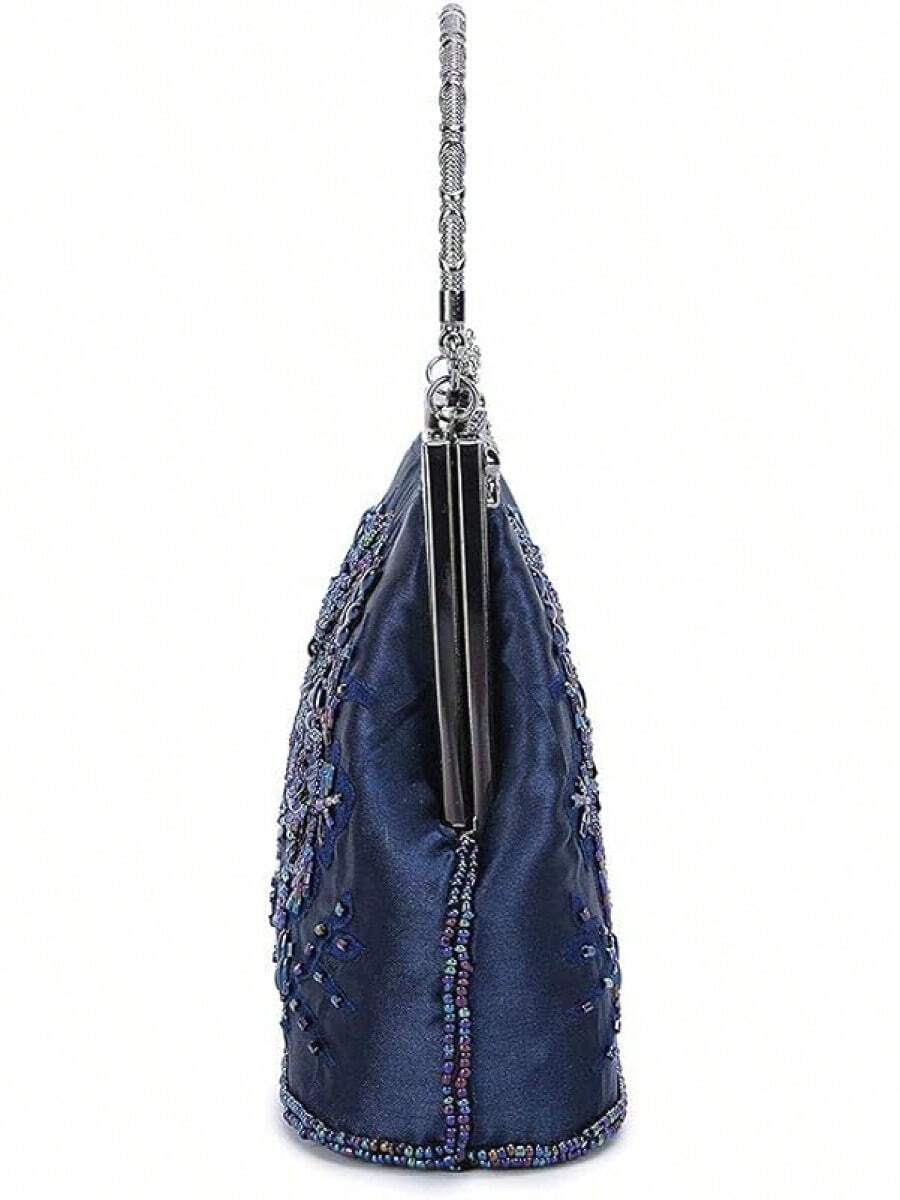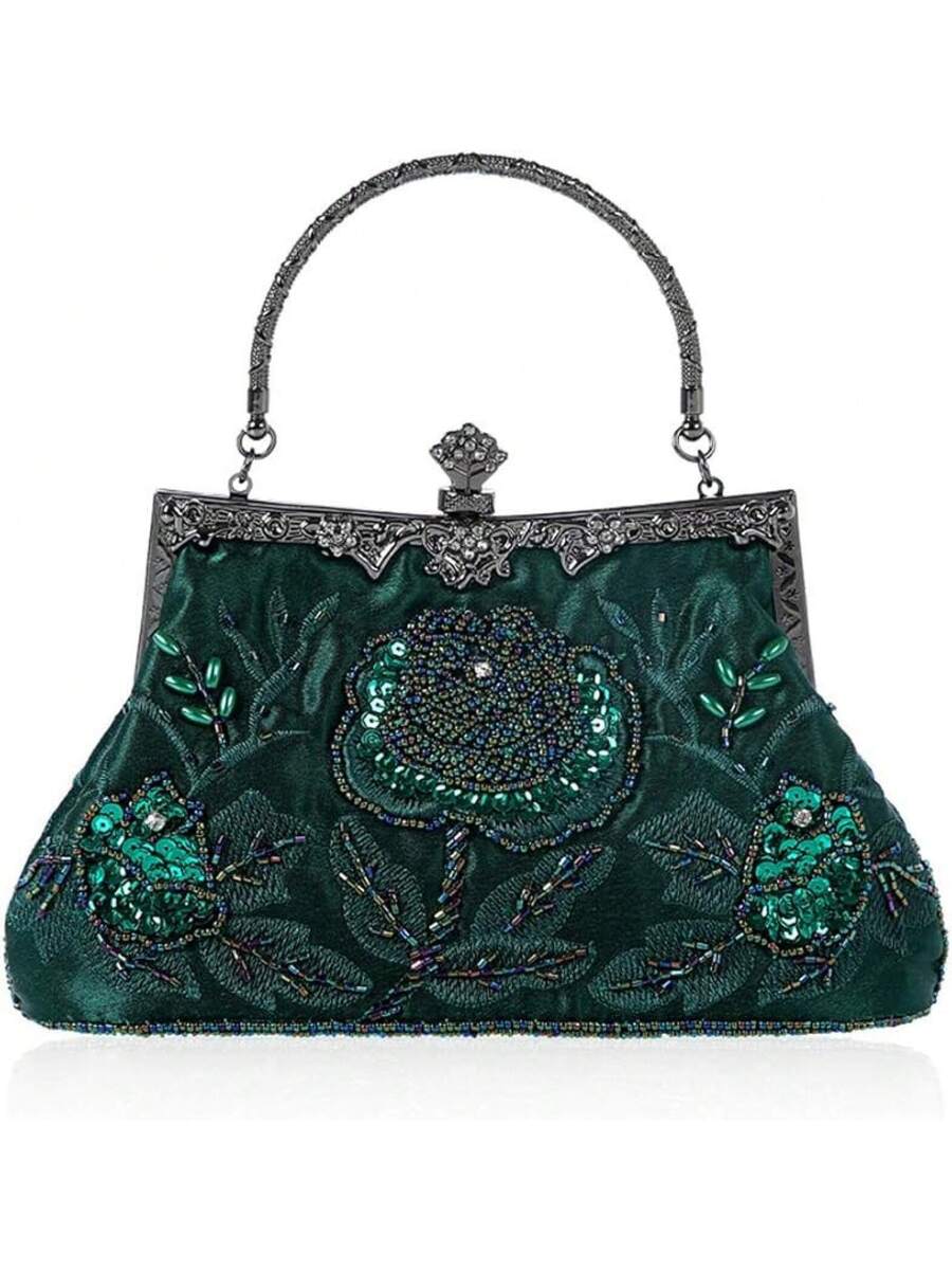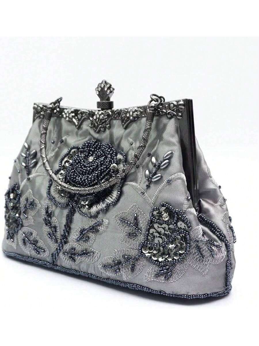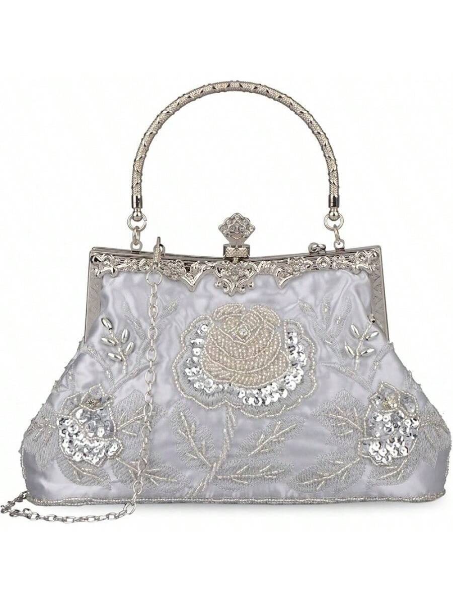 Vintage Sequin Embroidered Evening Bag - Elegant Clutch for Weddings and Parties