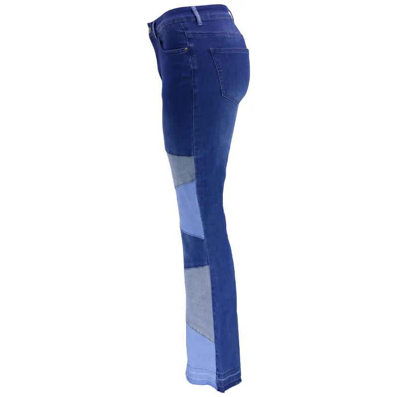 Women Flare Jeans Casual Pants Pannelled Collision High Waist Fit Female High Quality