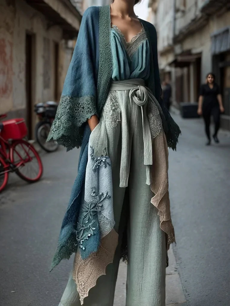 Women Lace Trimed Long Shirts Solid Retro Cardigans Blouse Tops for Women Irregular Hem Open Stitch Top