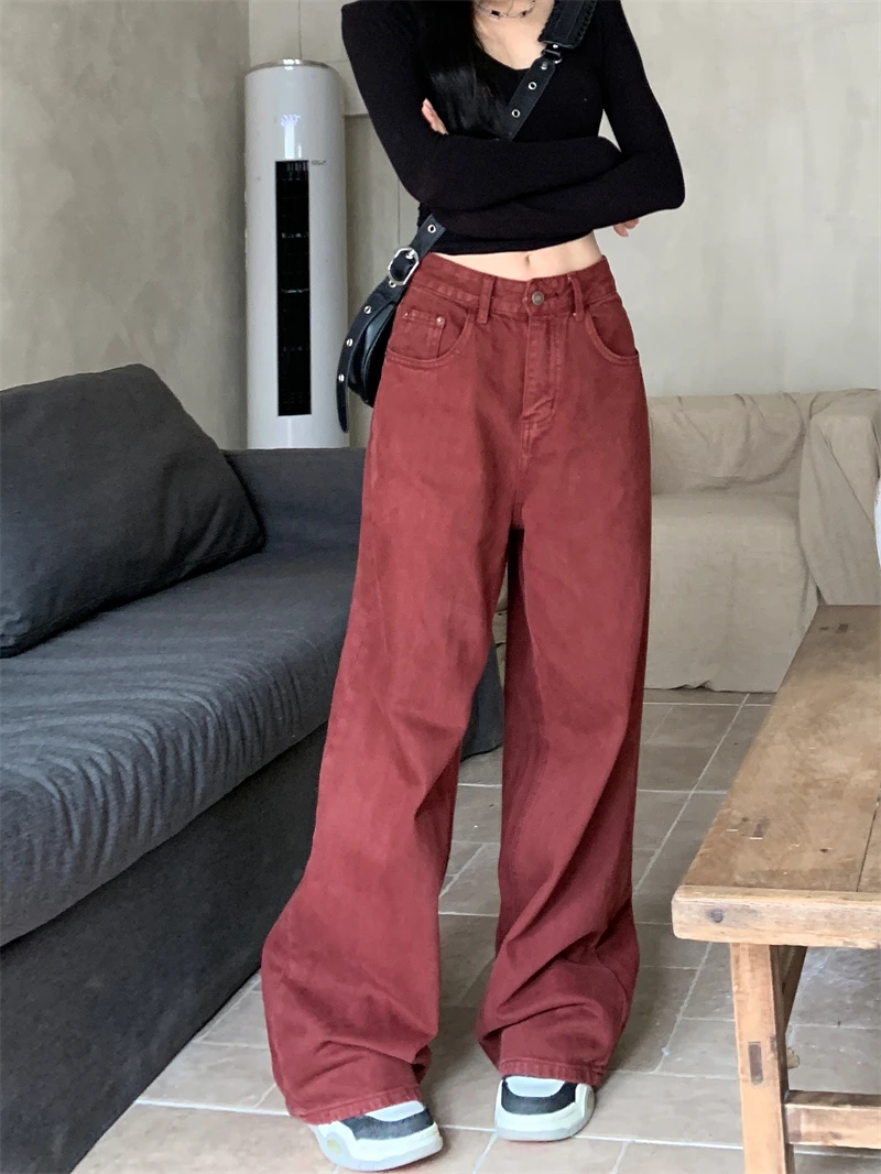 Women Red Jeans Harajuku Y2k Aesthetic Streetwear Baggy Denim Trousers Korean Loose Jean Pants 90s Vintage 2000s Trashy Clothes