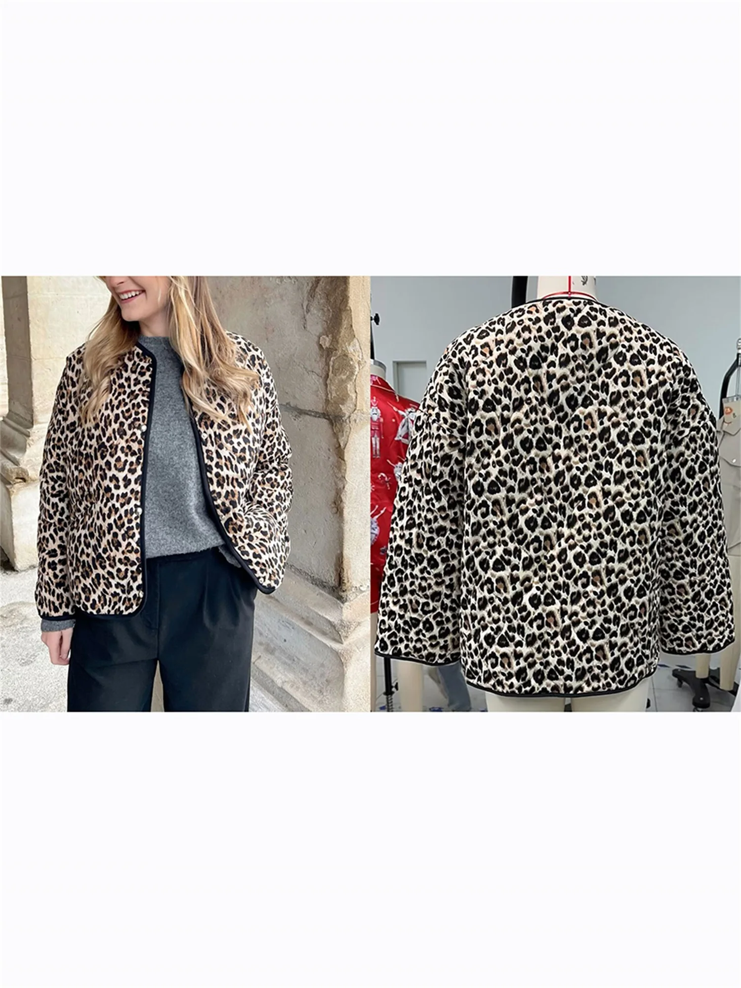 Women's Winter Jacket Loose Animal Print Round Neck Long Sleeve Snap Button Down Coat Warm Outerwear
