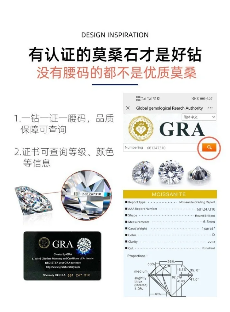 Women's PT950 Platinum round Six-Prong Ring with 3Ct Moissanite High-Purity Texture 3CT Striking Top High-End Gift