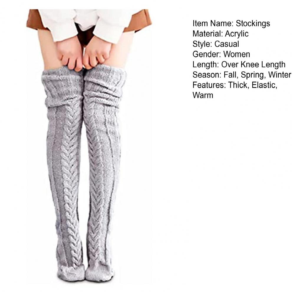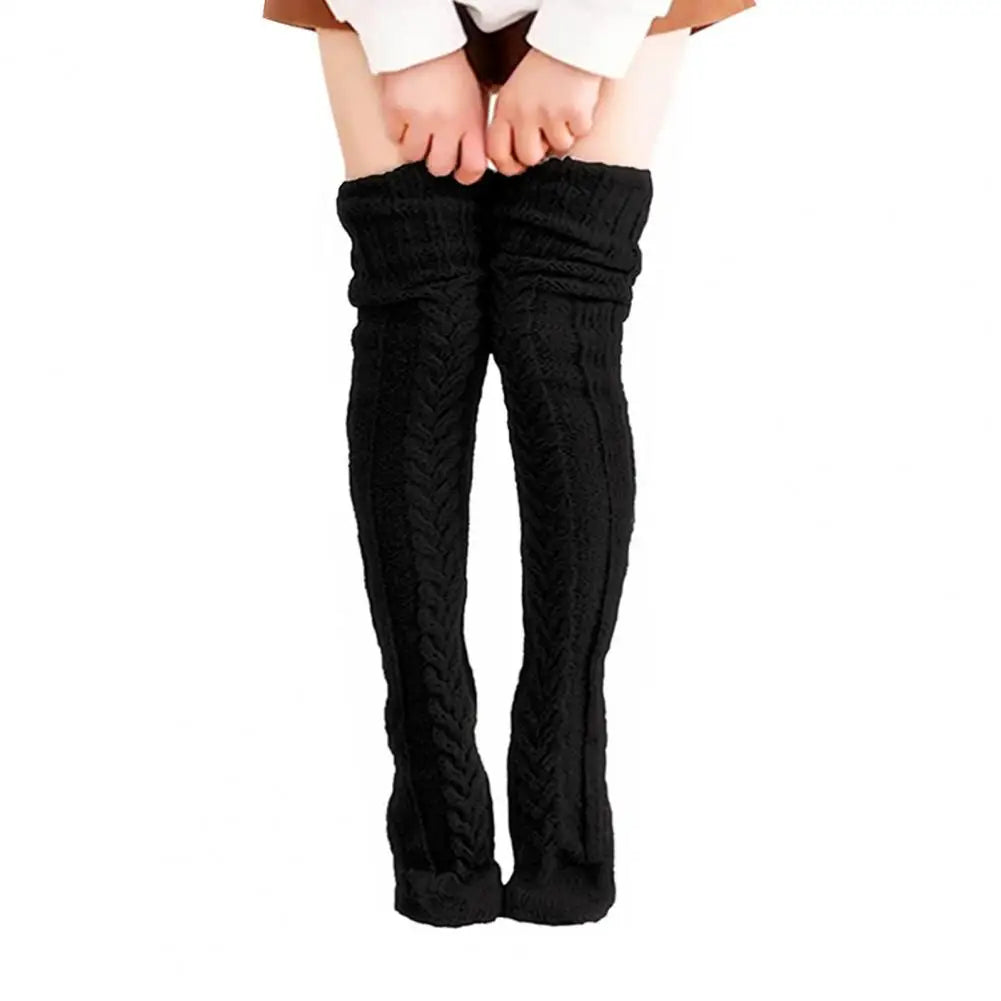 1 Pair Women Winter Stockings Thickened Knitted Solid Color High Elasticity Anti-slip Over Knee Length Twist Warm Soft Skirt Boots Socks Winter Tights