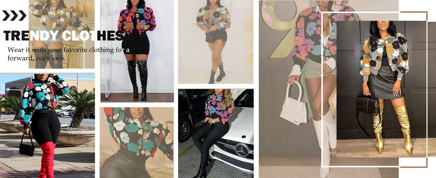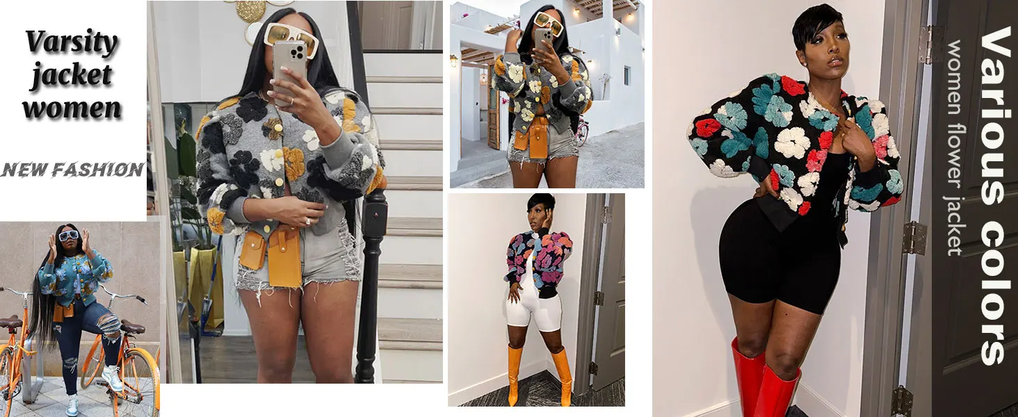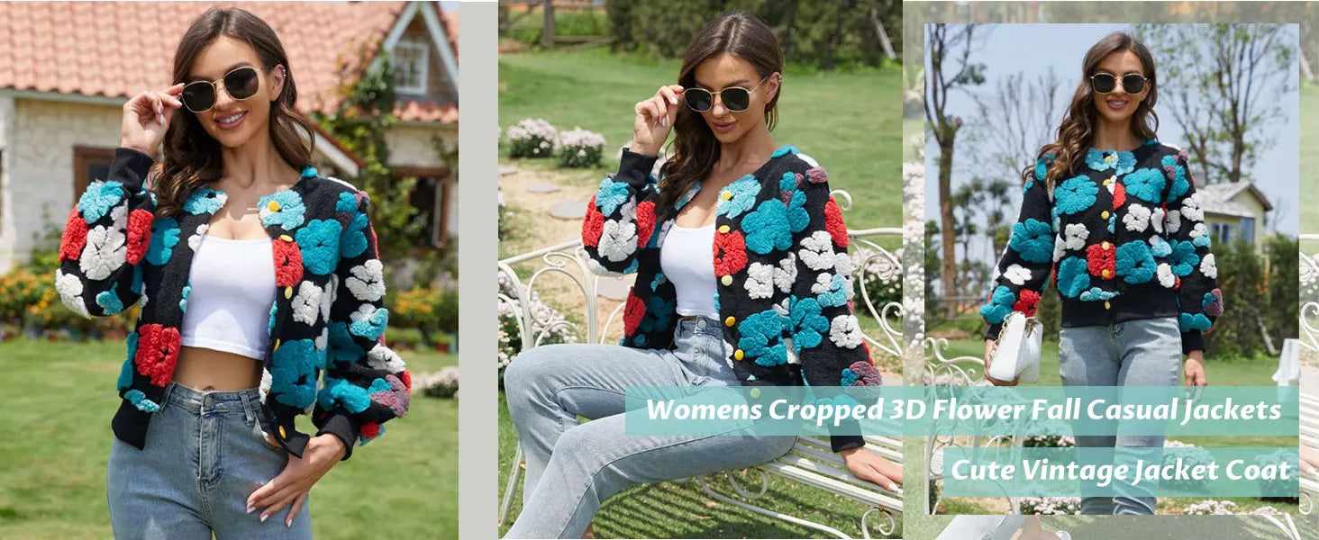 Wool Coats for Women Floral Puff Sleeve Embroidered Printing Short Fall Winter Jacket