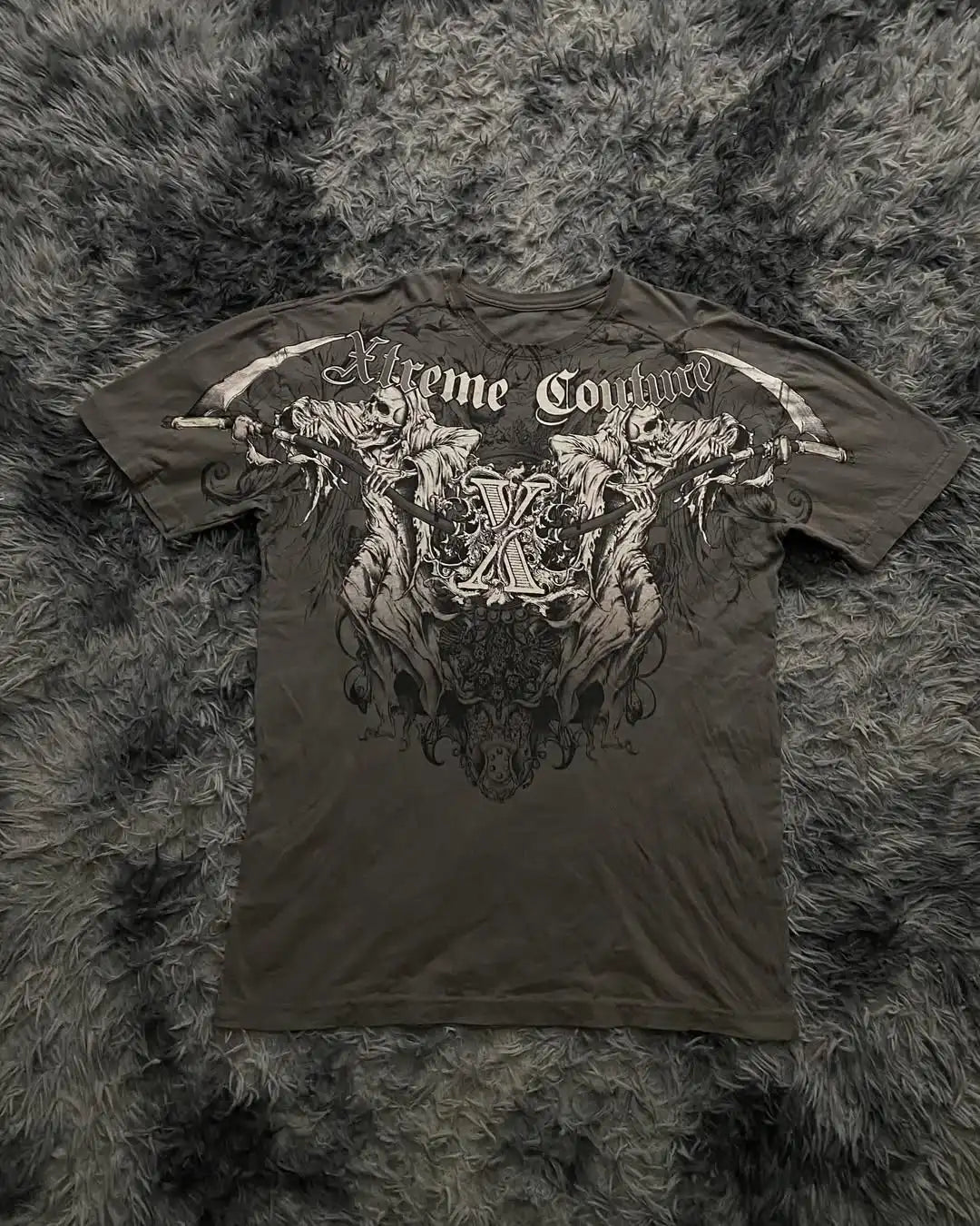 Xtreme Dark Grey Short Sleeves Woman High Street American HD Printing T-shirt Men and Women