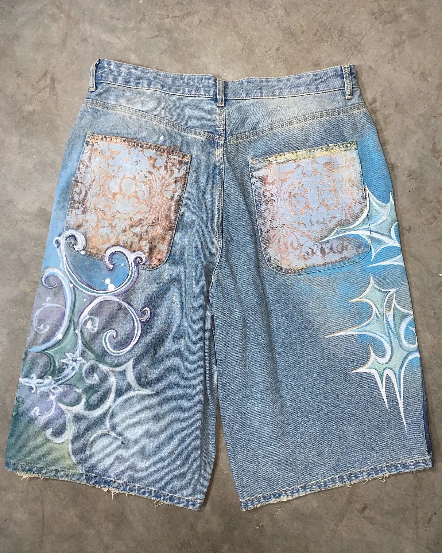 Y2K Gothic Punk Style Retro Graffiti Shorts Men Women Fresh Flower Design Pattern Street Hip Hop New Casual Loose Jeans