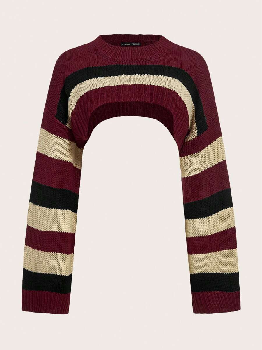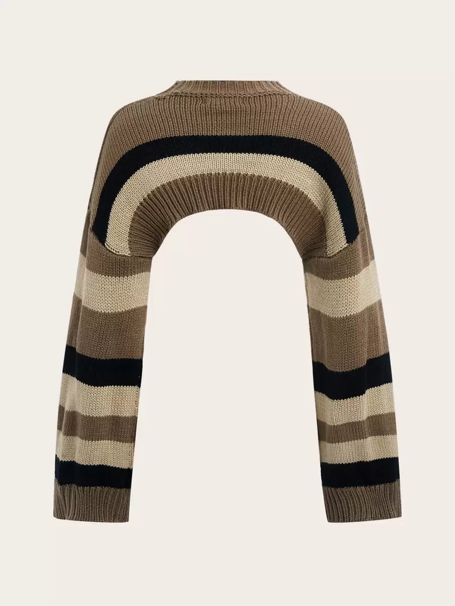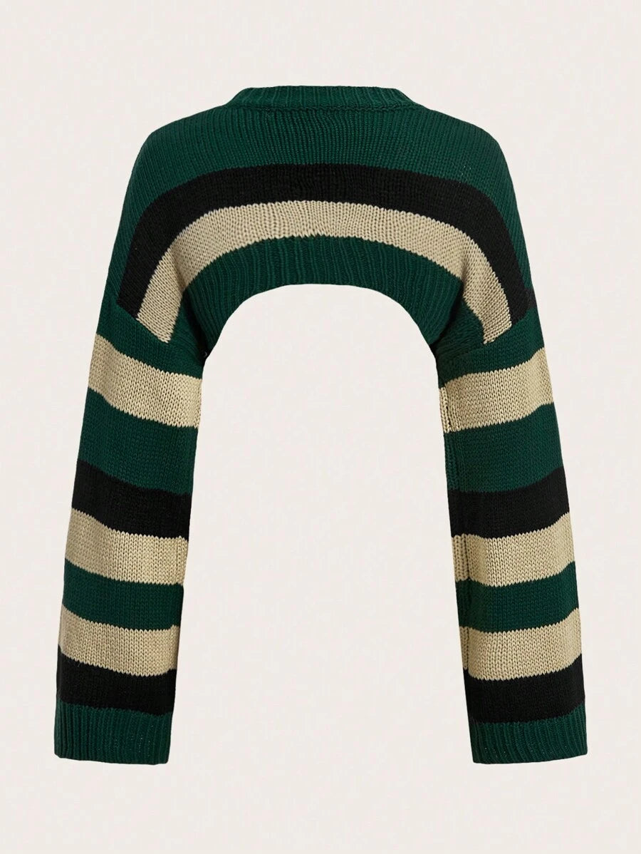 Y2K Grunge Stripe Pattern Super Crop Sweater - Trendy