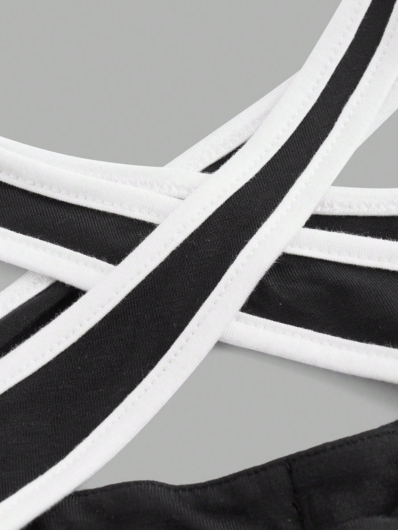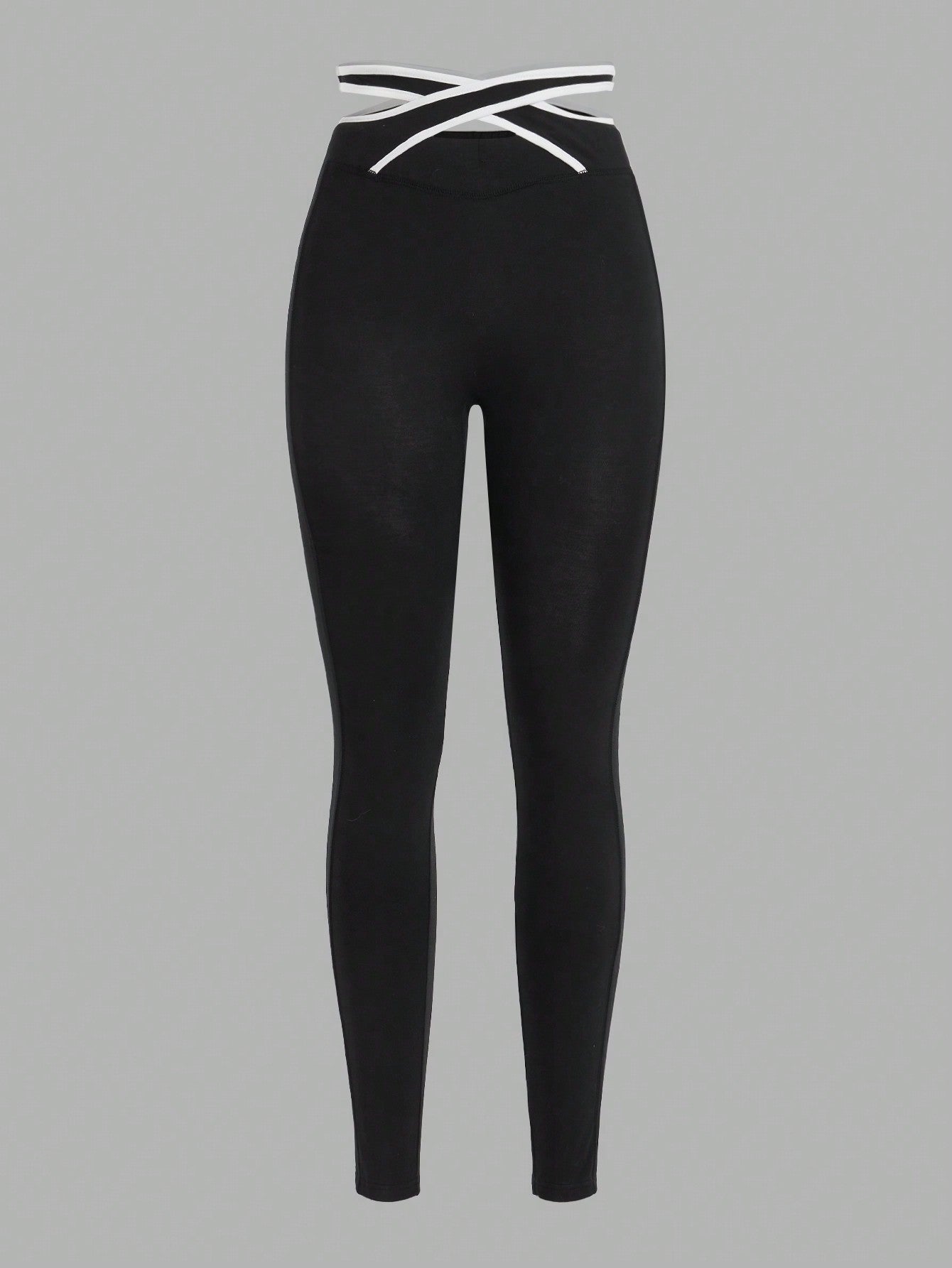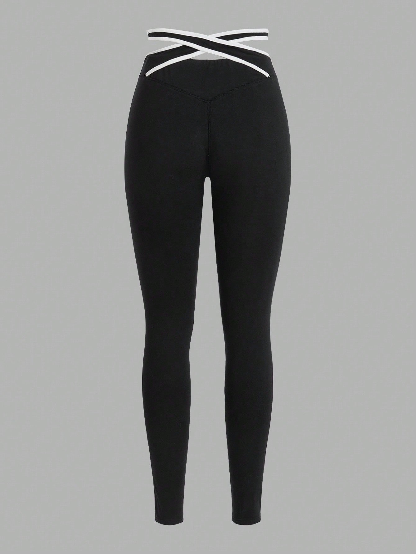 Y2K Women's Cross Waist Skinny Yoga Pants with Contrast Trim - Stylish Leggings & Joggers